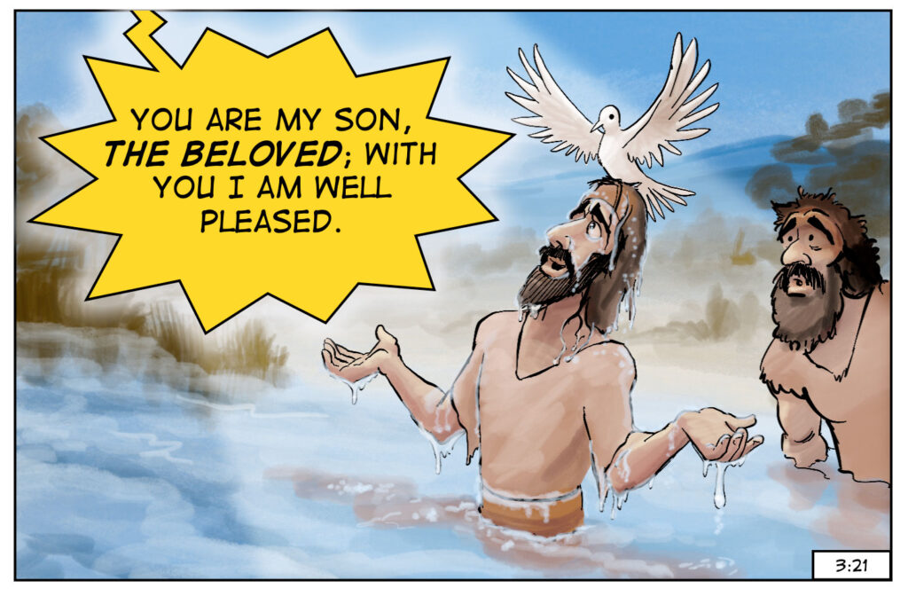 Two important things happen at Jesus’ baptism. First, a voice from the heavens claimed Jesus as a beloved and pleasing son. Second, the Holy Spirit rested upon him in the form of a dove.